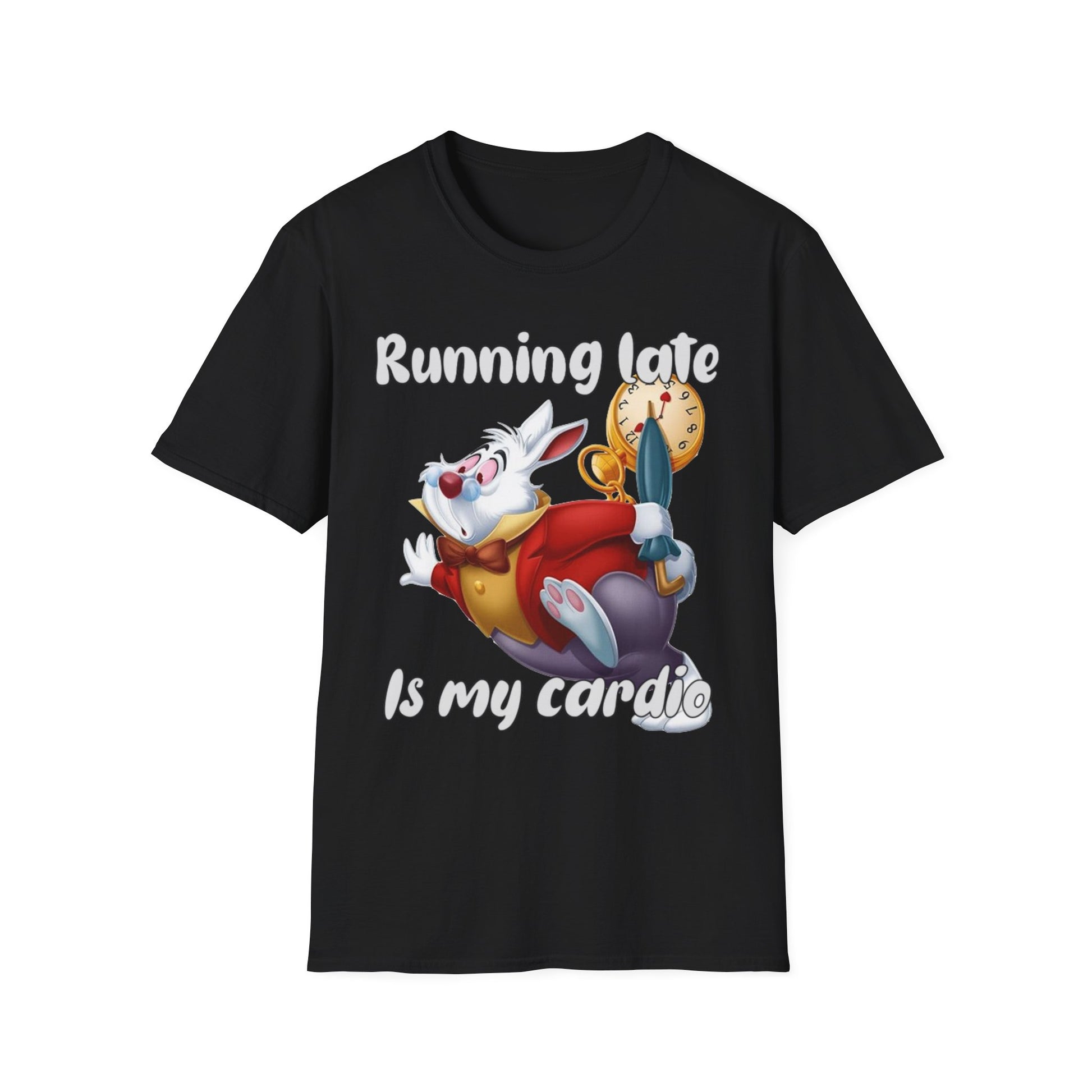 Funny Rabbit Tee - "Running Late Is My Cardio" - Unisex Softstyle T-Shirt Alice in Wonderland